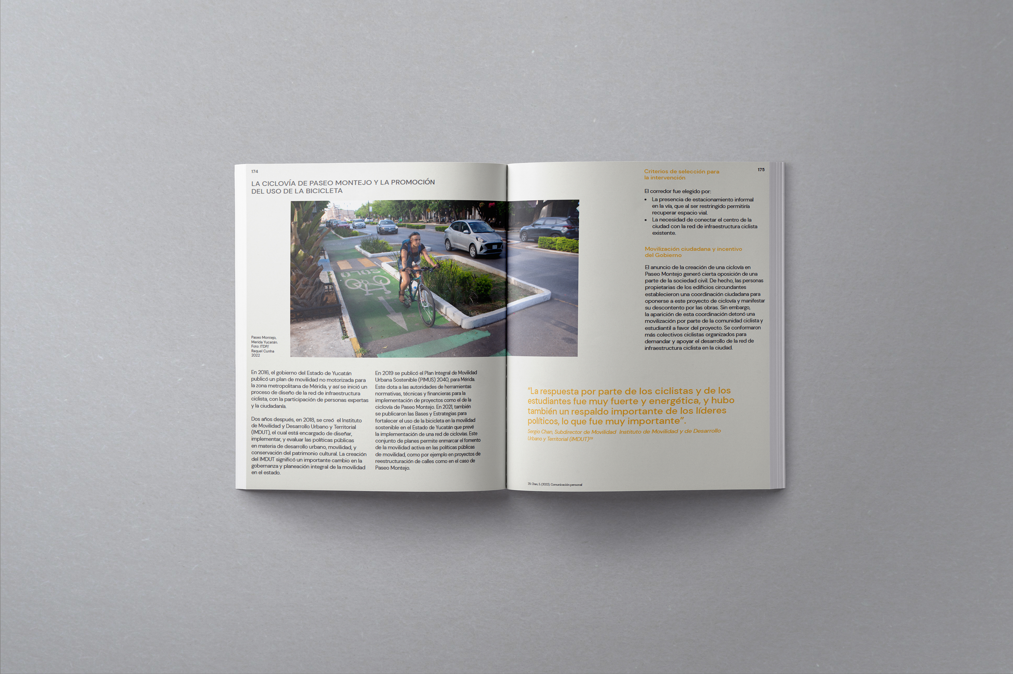 Es una iniciativa es de ITDP en colaboración con Cemex y Autodesk. Esta publicación contribuye a difundir la importancia del diseño de calles más seguras, accesibles, incluyentes y sostenibles, además reúne casos destacados de 11 calles completas mexicanas, y los resultados del concurso de diseño de calles. Desarrollamos el concepto de marca y el diseño editorial del libro.