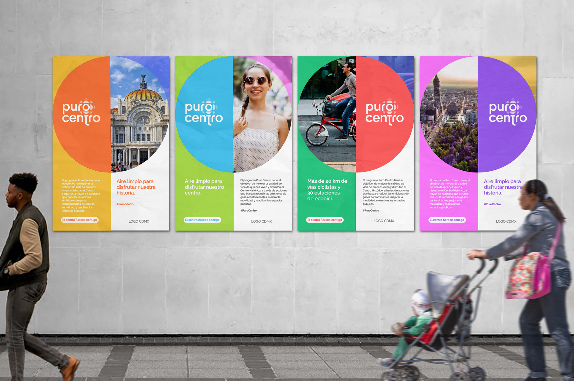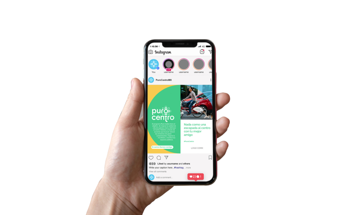 Puro Centro es una propuesta para convertir al Centro Histórico de la Ciudad de México en una zona de bajas emisiones, a través de acciones que buscan reducir las emisiones de gases contaminantes, mejorar la movilidad, y reactivar los espacios públicos. Desarrollamos un sistema de marca y estrategia de comunicación mediante un proceso de inmersión social.